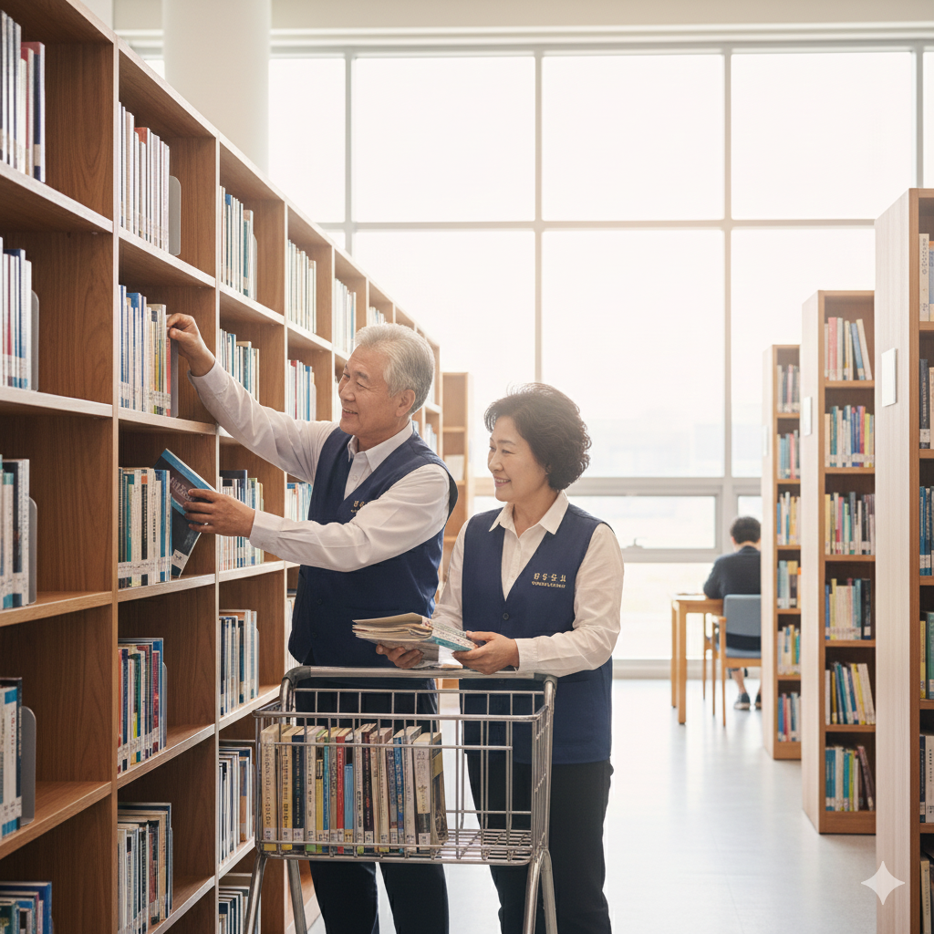 "시니어 채용 공고 속에서 당신의 지혜가 빛날 조용한 서가를 찾아보세요."